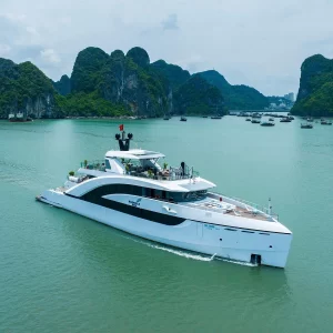 Chúng tôi mang đến một chiếc du thuyền được thiết kế tỉ mỉ, phù hợp với mọi nhu cầu để bạn tận hưởng một chuyến đi tuyệt vời. Mỗi khoảnh khắc trải nghiệm của bạn là điều chúng tôi quan tâm. Chúng tôi đã lựa chọn kỳ công từng chi tiết, sử dụng chất liệu nhập khẩu hiện đại và ấn tượng. Bảng màu nhẹ nhàng, trang nhã và cách bố trí vật liệu hoàn hảo sẽ mang đến cho bạn cảm giác thoải mái trong suốt hành trình.